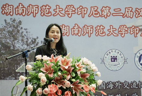 杨玲在致辞中表示,印尼是湖南师范大学项目最多、用力最勤、感情最深、朋友最多、外籍校友最多的国家。十多年来,湖南师大面向印尼的华文教育工作实现了常态化和全覆盖。她对校友总会进行了介绍,并诚挚邀请印尼校友明年回校见证母校80华诞的历史时刻,共同分享母校繁荣发展的喜悦,为母校的未来献计献策,添砖加瓦。
