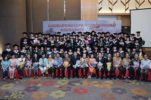 黎大志在致词中代表学校向中国海外交流协会及印尼华文教育界表示感谢,并祝贺全体毕业学员。他说,印尼是“一带一路”上的重要国家,是世界上华人数量最多的国家。“一带一路”给印尼的华文教育带来了历史性的机遇。湖南师范大学一直致力于推动印尼华文教育的发展,在华文教师培养、华文教材研发、华裔青少年教育、教师外派、合作办学等方面都做了诸多工作,并得到了印尼华文教育界的认可。黎大志肯定了全体印尼学员在学习过程中坚毅顽强、精益求精的学习精神,他希望全体学员秉承“仁爱精勤”的校训精神,以“师范仁道、爱人以德、精心施教、勤勉有为”的理念促进印尼华文教育发展的标准化、正规化、专业化。