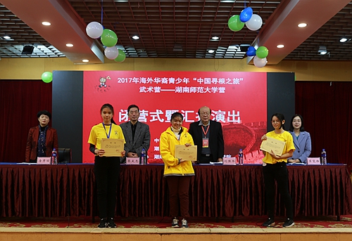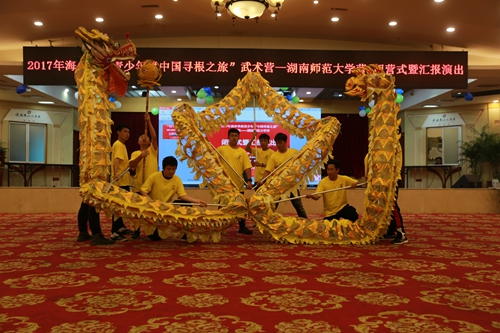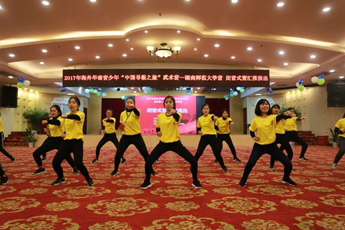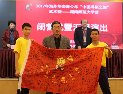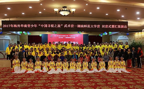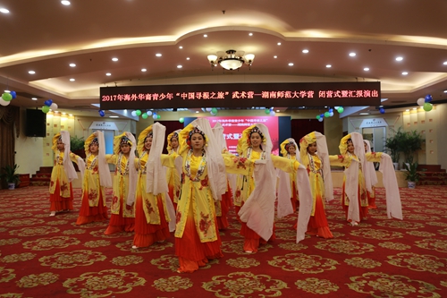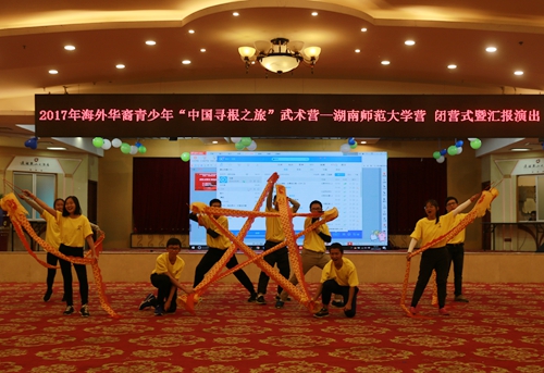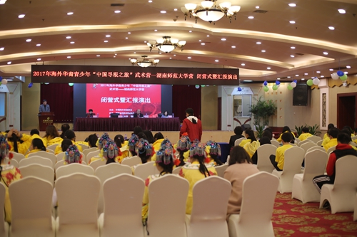 (通讯员 田天)浓浓中华情,不解湖湘缘。12月29日下午,由中国海外交流协会主办,湖南省海外交流协会协办,湖南师范大学承办的2017年海外华裔青少年“中国寻根之旅”武术营(湖南师范大学营)闭营式暨汇报演出在通程麓山大酒店大会议厅举行。