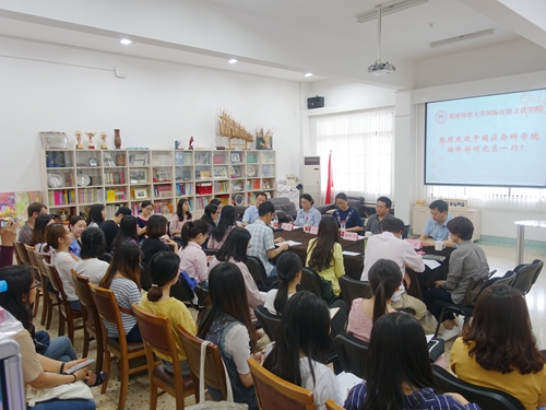 学院教师、研究生以及中高年级留学生从不同角度,对新型词典的编纂提出建议并与社科院专家进行交流,学院师生发言积极踊跃,座谈会交流持续近三个小时。储泽祥副主任表示,不少建议对词典的编纂很有启发和帮助。