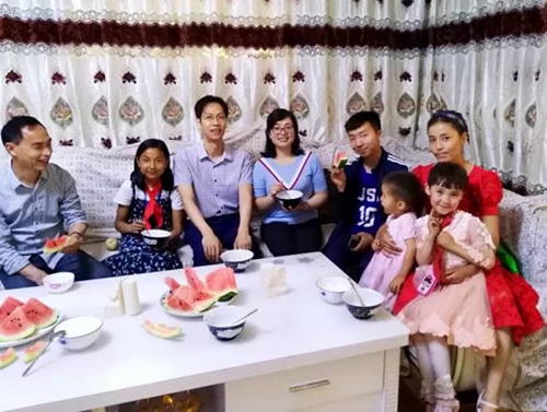 下午18:00,在校领导的陪同下,两位老师对四位维族学生的家庭进行了走访,调研孩子们的家庭语言环境。除了只言片语,家长们几乎无法用国语进行交际。孩子们纯维语的家庭环境和社会环境使得民族地区推行国语教学任重道远。