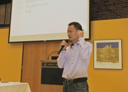 沈敏为中文教师讲授《汉语语法专题》。他从一则微信引入正题,揭示汉语语法于汉语社团“无处不在”而又“习焉不察”的事实,并从语言修养、语言学修养、语言教学修养三个层面解析中文教师的专业修养,认为语法主要作用于语言学修养;结合生动有趣的汉语事实,沈敏还对汉语语法的特点、汉语语法与认知的关系进行了深入浅出的阐释,并对华人华裔和美国孩子的汉语语法教学提出了不同的解决思路。沈敏的讲座幽默风趣、互动性强,激起美国中文教师对汉语语法问题及语法教学的浓厚兴趣。