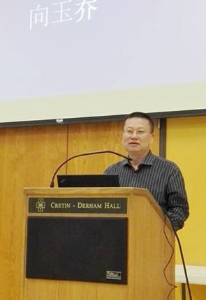 向玉乔巡讲题目为《中国传统文化的精髓及其影响》。讲座中,向玉乔从语言表达的角度切入中西文化差异,认为中国传统文化的精髓是中国哲学,细致梳理了儒、道、佛三家所倡导的不同人生哲学,重点解析了中国传统哲学对中国人思维方式、性格、汉语汉字及其它文化形态的深刻影响。向教授结合自己的赴美访学经历及美国华人华侨的生活事实,以“接地气”的方式阐释中国人的思维及性格特征,并从文化导入的角度对美国中文教育提出自己独到的见解,获得美国中文教师的广泛共鸣。